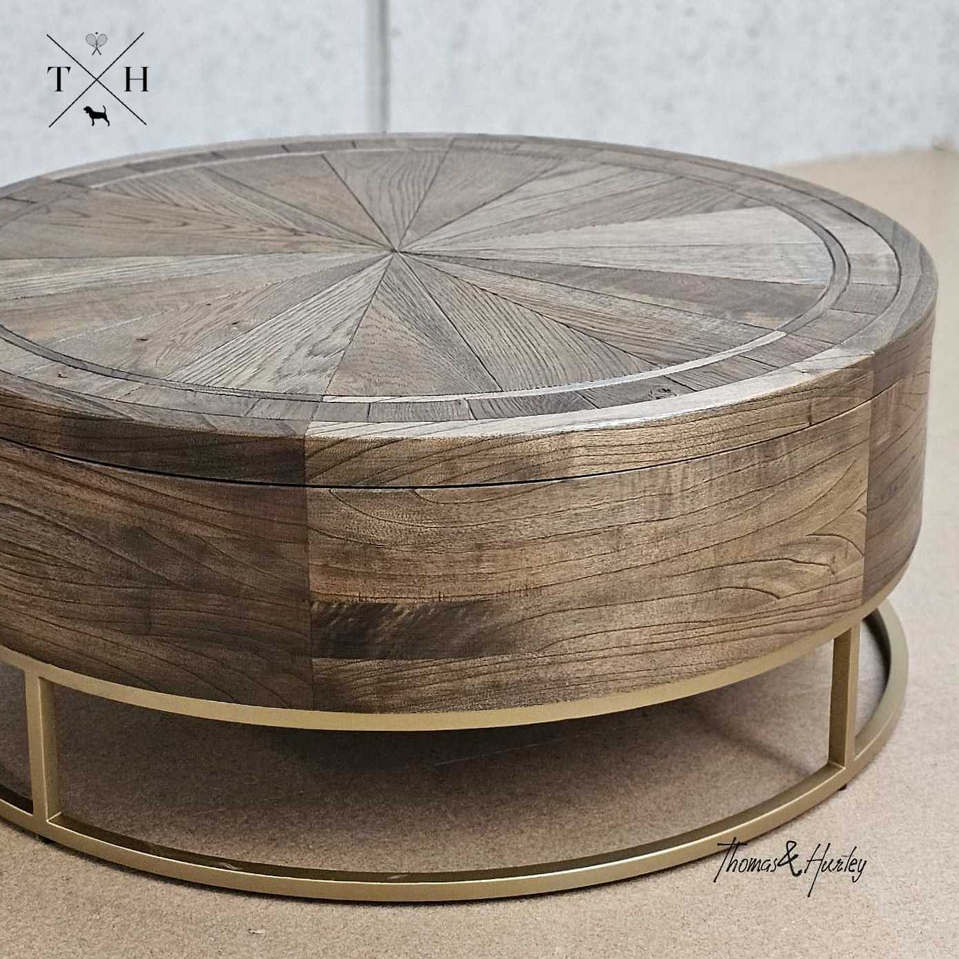 Darcy Burnished Oak Parquetry Round Coffee Table with Storage Introducing the Darcy Burnished Oak Parquetry Coffee Table, a masterpiece of UK design, perfect for both class… Log in for pricing